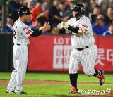 최준석 '코치님 홈런 괜찮았어요~'[포토]