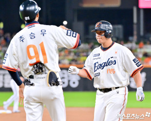 노시환 '조동욱 향해 미소 활짝'[포토]