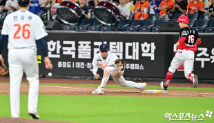 최원준 ‘송구 실책 덕분에 세이프’[포토]