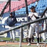 김태형 감독 '재일아, 1루 수비는 이렇게'[포토]