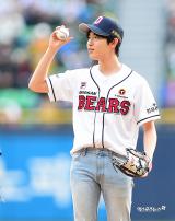 김재환 '시구한 기념구는 받아야지'[엑's HD포토]