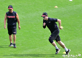 홍창기 ‘보호대 착용하고 러닝’[포토]