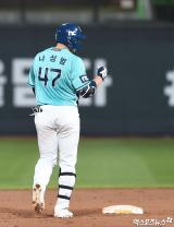 양의지 '태그는 됐는데 공이 빠졌어'[포토]