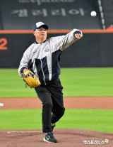 역시 대성불패! '1999 KS MVP' 구대성의 완벽 시구…"후배들이 두 번째 우승 도전 잘 이어갔으면" 한화 응원 [KS3]