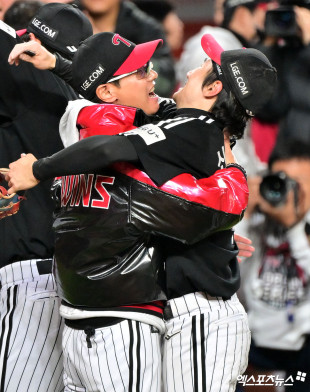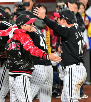 염경엽 감독 ‘임찬규와 함께 우승의 기쁨을’[포토]