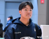정우주 '수속 마치고 가볍게'[포토]