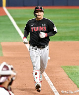 염경엽 감독 ‘문보경 홈런에 환호’[포토]