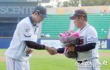 '김재환과 악수 나누는 김태형 감독'[포토]