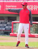 김기태 감독 '직접 토스를 해주며'[포토]