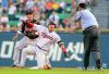 '손아섭의 파울 타구에 윤요섭의 포수 마스크가 벗겨져'[포토]
