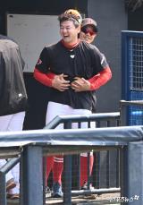 최주환 '코칭스태프와 훈훈한 허그'[포토]