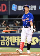 내야 뜬공으로 물러나는 손아섭 '한화 이적 후 임찬규와 맞대결'[포토]