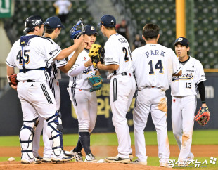 두산 ‘승리의 하이파이브’[포토]