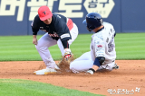 양석환 슬라이딩에 넘어지는 김선빈[포토]