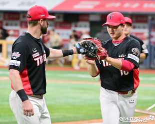 김태형 ‘첫 등판 기념구는 손에 꼭’[포토]