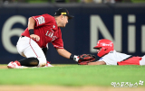 최주환 '타이밍은 아웃인데'[포토]