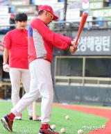 김기태 감독 '직접 시범을 보이며'[포토]