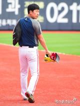 윤석민 '스트레칭을 위해 외야로'[포토]
