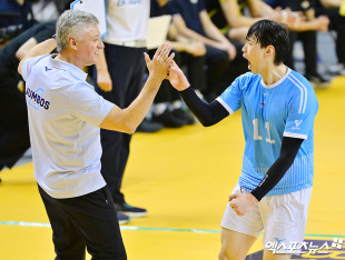 김선호 ‘헤난 감독과 하이파이브’[포토]
