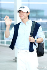 '훈남의 정석' 정해인, 산뜻한 프레피룩으로 완성한 공항패션