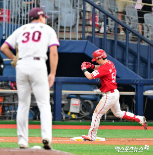 최지훈 ‘주승우 상대로 동점 솔로포’[포토]