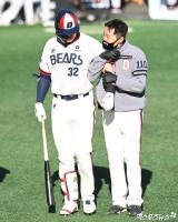 발목 통증으로 교체되는 김재환[포토]