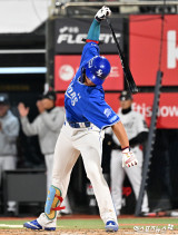 류지혁 ‘더그아웃 향해 세리머니’[포토]