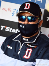 취재진과 대화 나누는 김태형 감독[포토]