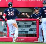'2G 연속 홈런' 양의지, 윤석민 상대 달아나는 솔로포