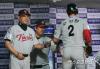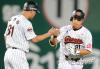 정성훈 '롯데 덕아웃을 향해 환하 미소'[포토]