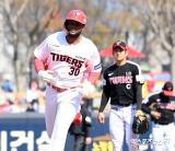 KIA 놀린, 왼쪽 팔꿈치에 강습 타구 맞고 교체…"아이싱 중, 검진 예정"
