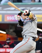 박정현 '김광현 상대로 팀 첫 안타'[포토]