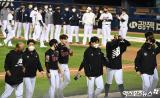 선수들과 승리의 기쁨 나누는 김태형 감독[포토]