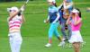 안신애 캐디 '더 높이 잔디를 날려라~'[포토]