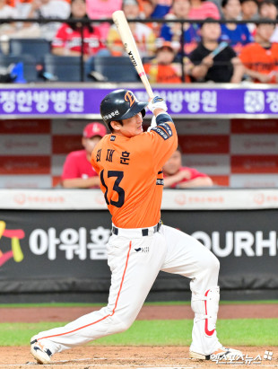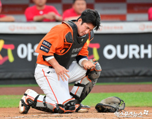 파울 타구 맞은 최재훈, 어질어질해[포토]