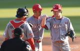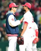 박종훈 '손혁 코치 격려 받으며'[포토]
