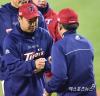 최희섭 '감독님 앞에선 공손하게~'[포토]