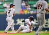 최주환 '나비처럼 날아서 병살처리'[포토]
