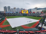 대형 방수포 설치, 오락가락 빗줄기가 변수…롯데-NC 시즌 5차전 정상 개최 가능할까 [사직 현장]