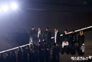 '뉴욕行' BTS 완전체 또 떴다…지쳐 보여도 비주얼은 못 숨겼다, RM은 목발 투혼 [종합]