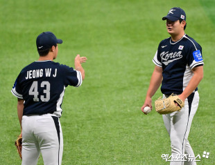 정우주-김서현 '대표팀 마운드의 미래'[포토]