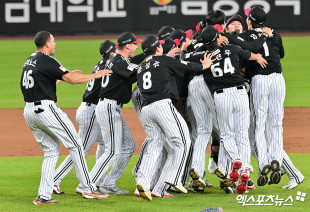 염경엽 감독 ‘홍창기를 끌어안으며’[포토]