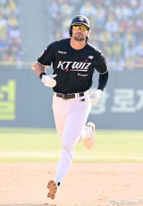 이강철 감독 '힐리어드 홈런 축하해'[포토]