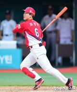 김민식 '맞아도 기분이 좋아'[포토]