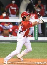박찬호 'KIA 첫 안타의 주인공'[포토]