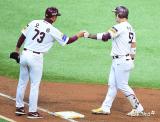 샌즈 '볼넷으로 출루'[포토]
