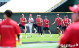선수단 훈련 지켜보는 김재현 단장[포토]