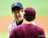 박건우 '김하성과 유쾌한 대화'[포토]
