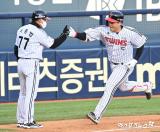김현수 '담장 한 가운데를 넘겼어'[포토]