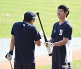 박건우 '정수빈도 한 대 맞아봐'[포토]